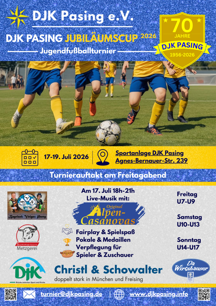Unser Turnier ist ein fester Bestandteil des Vereinslebens der DJK Pasing und jedes Jahr ein echtes Highlight für Spielerinnen und Spieler, Trainer, Eltern und Zuschauer. Für das leibliche Wohl ist selbstverständlich wieder bestens gesorgt.